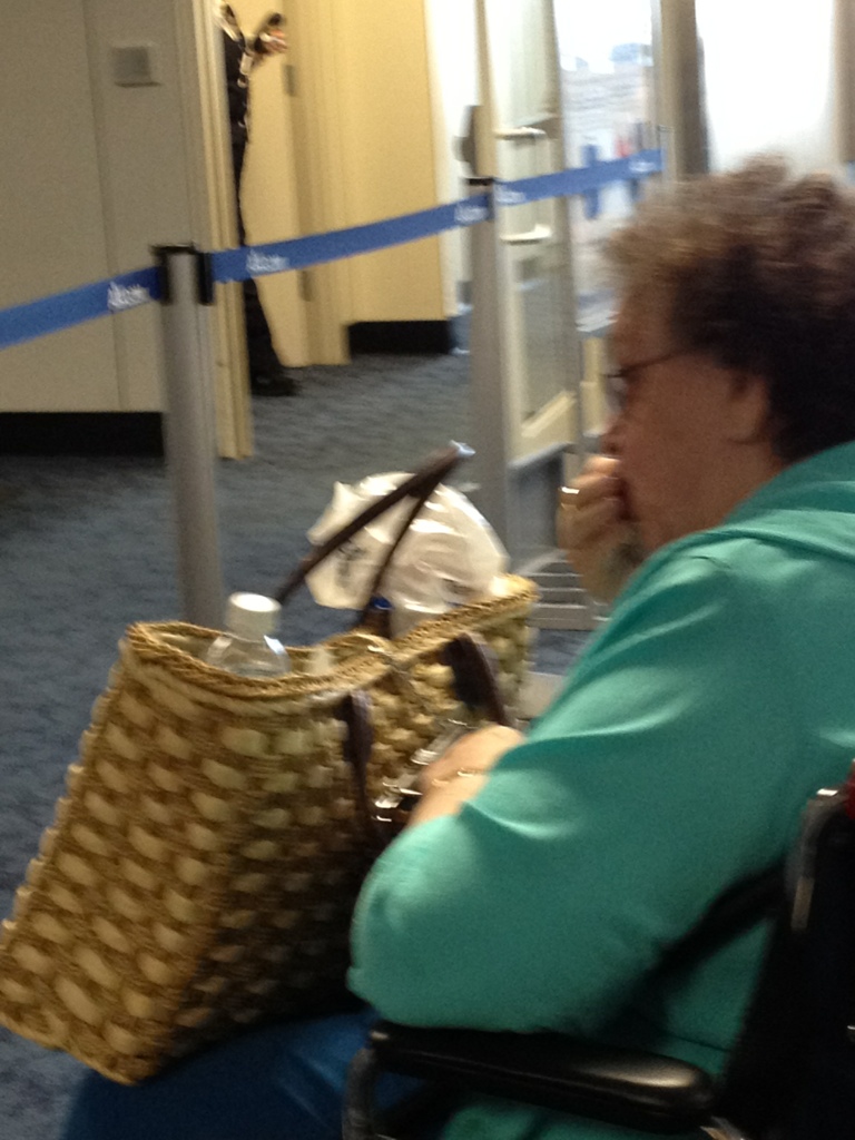 okay so this lady asked the wheelchair pusher dude to get her a pretzel dog and a bottle of water. she gave him $5. he came back, with the goods, and asked her if she wanted the receipt. she said yes and realized that he paid $0.30 out of his own pocket for her food. she whipped open her wallet, gave him a dollar, and told him to keep the change. OMG. I just hope she’s in coach because that hot dog is going to be searching for daylight (quoting Scott Martin) before the flight has landed in Philly.