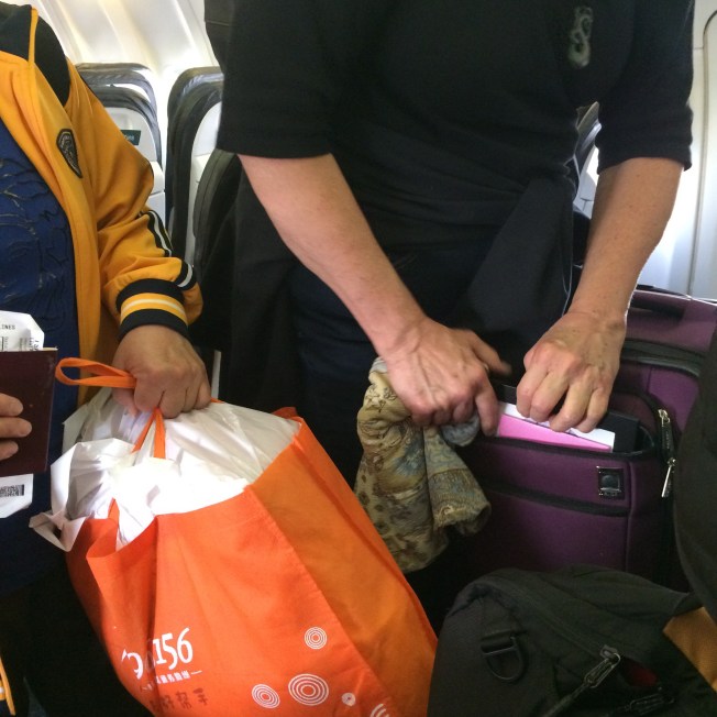 So, after 3 failed attempts to stow her bag, this lady started unpacking her luggage to make it thinner so it would fit. let me set this up for you. she’s in my seat, there’s a guy in the middle seat and she’s flinging articles of clothes and a pair of shoes over middle seat’s head and onto the floor in front of her seat.