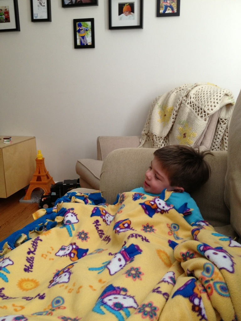 I was juggling all of my gear and the Sinks’ dinner and headed to the 3rd floor, Peds. My heart was in my throat as I rounded the nurses’ station to 319B. I’d never seen a kid in the hospital outside of L+D. Lucky for me, Sophia was off having a chest x-ray, so I had a minute to acclimate. Oh, and to bitch about the traffic.